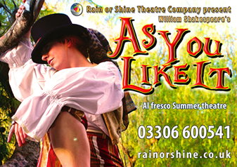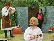 left to right - Rosalind (Pippa Meekings), Celia (Emmeline Braefield), Touchstone (Anthony Young) and Corin (Joseph Burke)